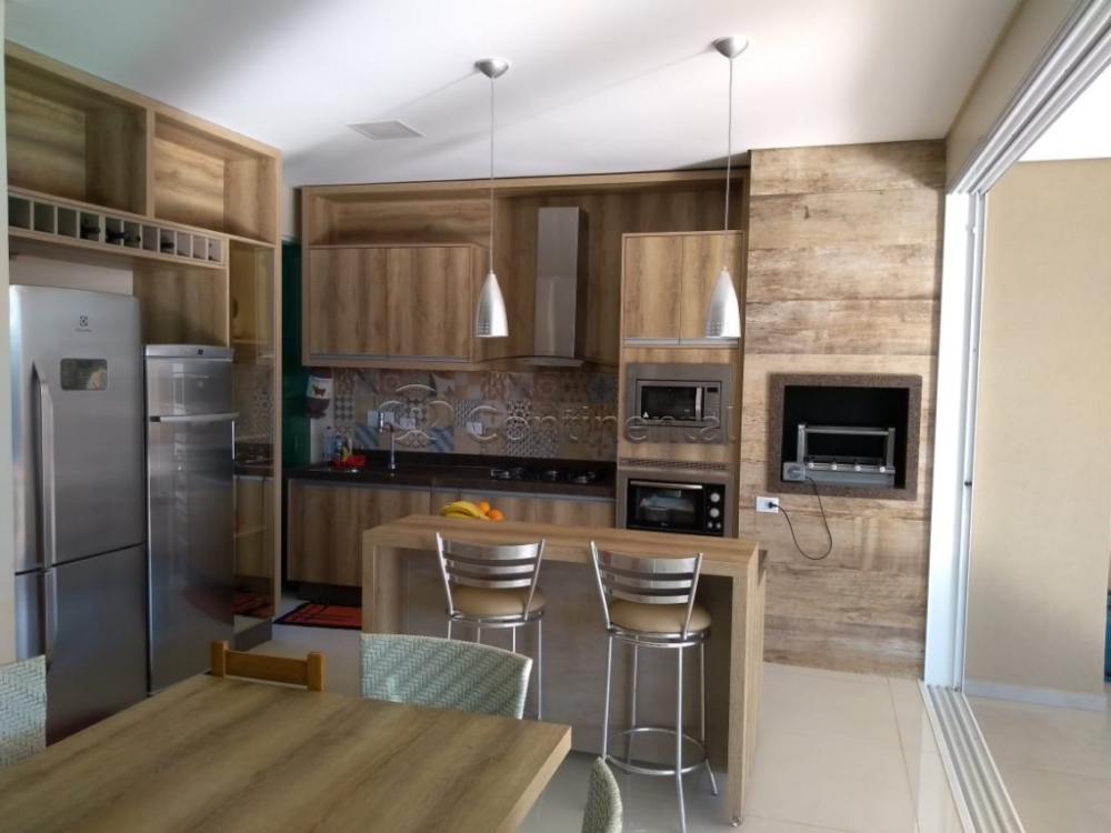 Casa com duas vagas de garagem, lavabo, sala de estar, sala de tv, sala de jantar, dois escritório, sacada, jardim, banheiro social, dois quartos, uma suíte, cozinha planejada, área de serviço, piscina, churrasqueira e área gourmet.